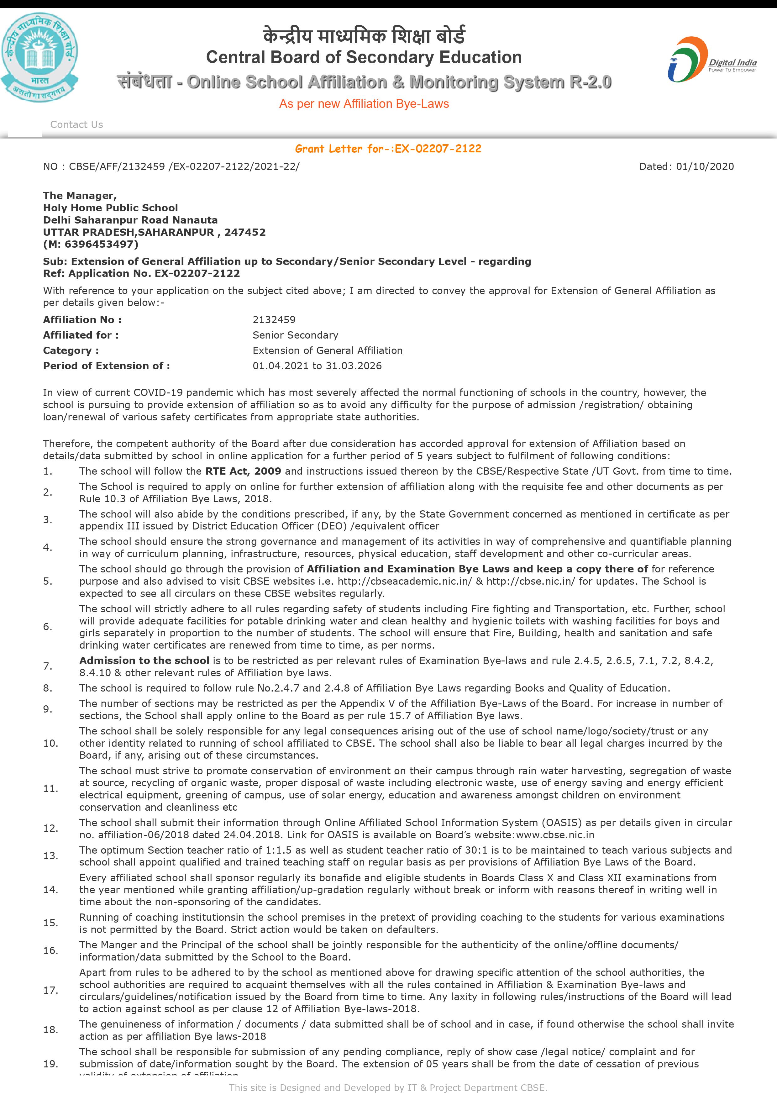 Affilation Certificate